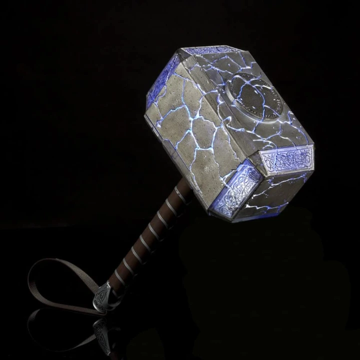 Pour ceux qui se sentent dignes… ou qui veulent juste une pièce légendaire dans leur studio, voici une réplique de Mjolnir avec sons et effets lumineux qui tient même sur un porte-manteau 😉
